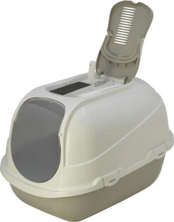 Le bac à litière Hera XL convient également aux chats de grande taille. Il est munie d’une poignée qui vous permet de le déplacer facilement. Sur le dessus se trouve un filtre à charbon remplaçable qui combat les mauvaises odeurs. Le couvercle s’enlève facilement grâce à un système de clics, ce qui vous permet de nettoyer le bac à litière. Il est livré avec une pelle à chat.