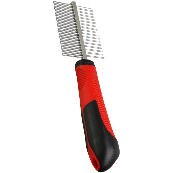 Le pelage de certains chiens est particulièrement sujet aux nÅ“uds. Un peigne nettoie, lisse et démêle le pelage et favorise la circulation de la peau. Si votre chien a des poils emmêlés, ne les arrachez pas d’un seul coup car vous enlèveriez aussi des poils sains. Travaillez plutôt du bas du nÅ“ud vers le haut et, si nécessaire, utilisez vos doigts pour vous aider. Ce peigne convient aux chiens à poils longs et courts. Nettoyez régulièrement le peigne avec de l’eau et une solution antiseptique telle que Dettol ou Barbicide pour éviter la prolifération des bactéries. Ensuite, laissez bien sécher.