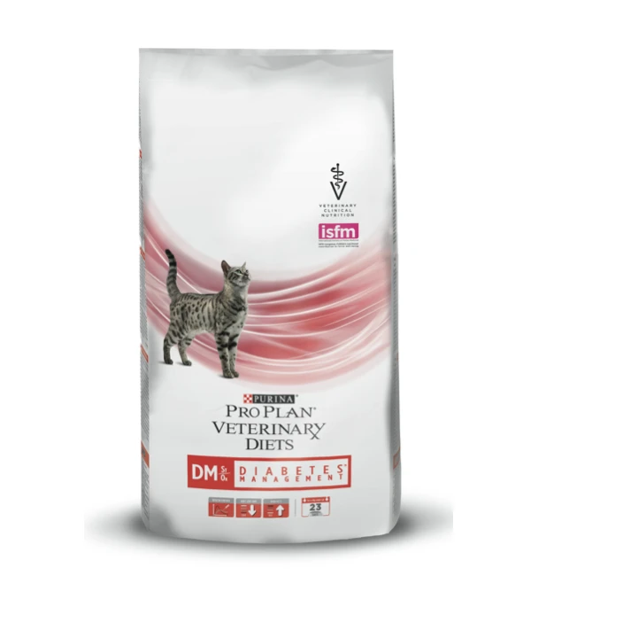 Les croquettes  et les boîtes PURINA Veterinary Diet DM sont enrichies en acides gras essentiels ( omega 3 et omega 6). Grâce à la consommation de cet aliment la dose d’insuline administrée au chat peut être abaissée dans de très nombreux cas.