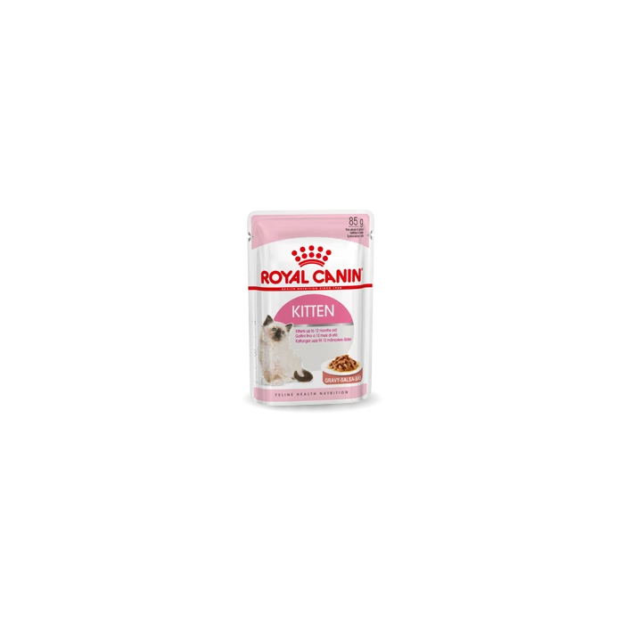ROYAL CANIN Kitten émincé en sauce est spécialement conçu pour une mastication facile et convient également aux mères.
